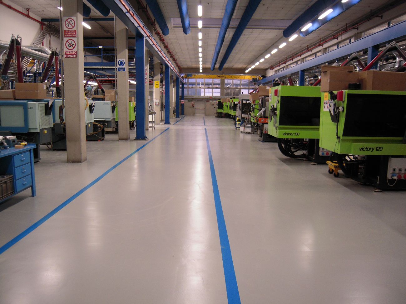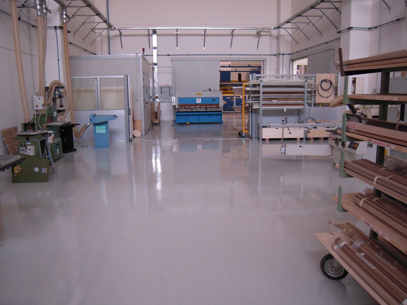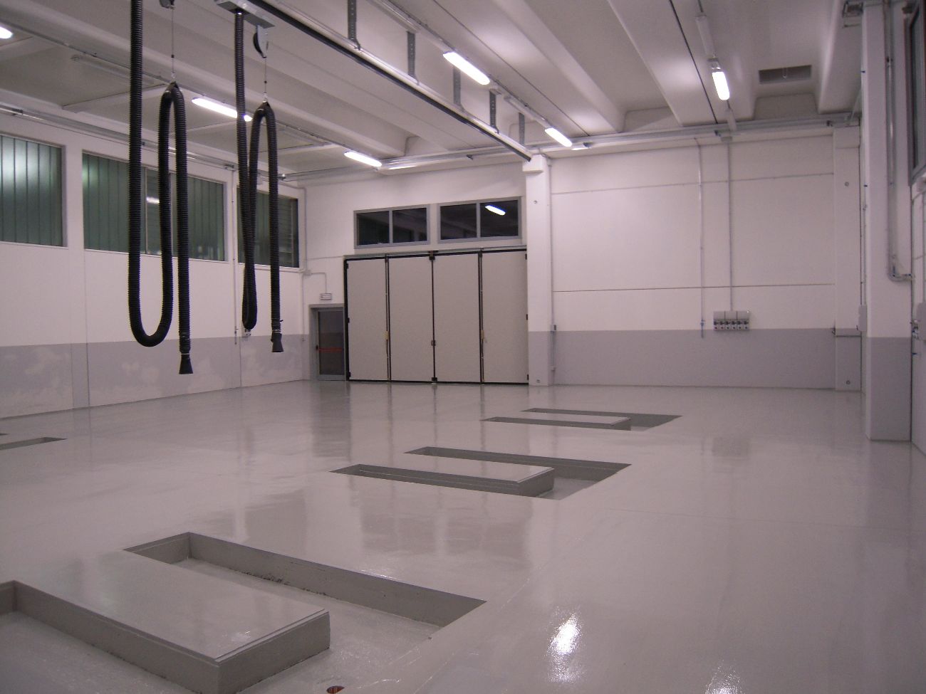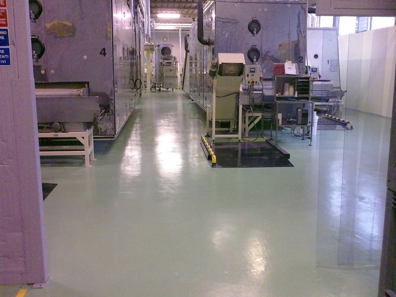 - Pavimento rivestino con resina adatta per l’impiego alimentare, è impermeabile, senza odori , possono essere fatti dei trattamenti antibatterici e antiacido